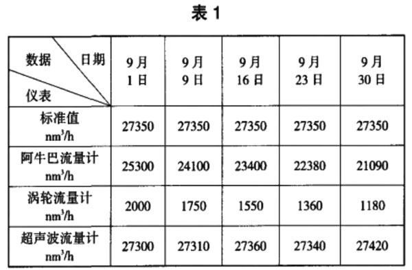 由于超聲波流量計(jì)所具有的特點(diǎn)使它作為計(jì)量儀表在煤氣計(jì)量中顯示出明顯的優(yōu)勢。現(xiàn)將三種測量方法的測量數(shù)據(jù)比較如下,見表1。