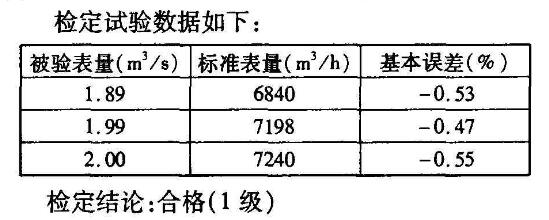 2.實施現以其中1臺開封儀表廠生產的口徑1600mm的0.5級電磁流量計為例,分析超聲波流量計的檢定方法及其優缺點。此臺1600mm口徑的流量計安裝于江心洲污水處理廠的進水管線上,由于行業特點,無法做到斷流停役,即使斷流停役,由于安裝于室內,空間狹小,電磁流量計無法拆卸搬移,因此不能采用傳統的送回校驗的方法,只能采用在線檢測的方法進行檢定。二零零四年元月,南京市質量技術監督局流量鋼卷尺計量檢定站到現場進行在線檢測標準表為精度為0.5級的多普勒法超聲波流量計。