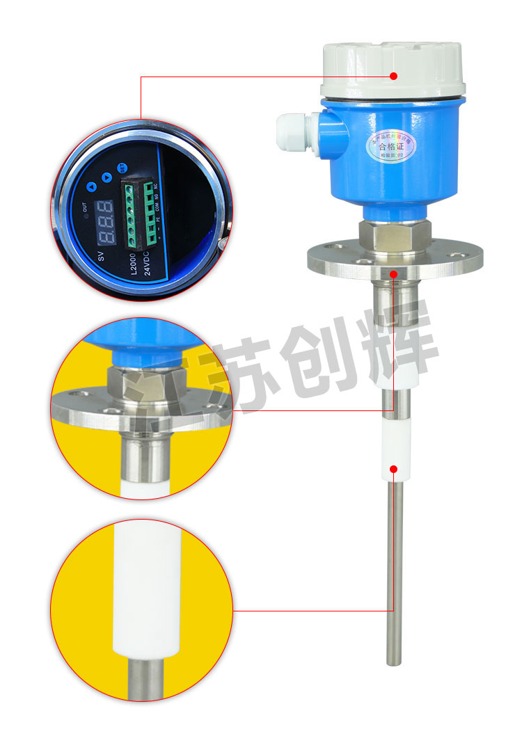 CH-CPDN11R纜繩型射頻導納料位開關:適用于大型罐體和料倉,采用垂直安裝的方式,有效避免物料的側面沖擊。